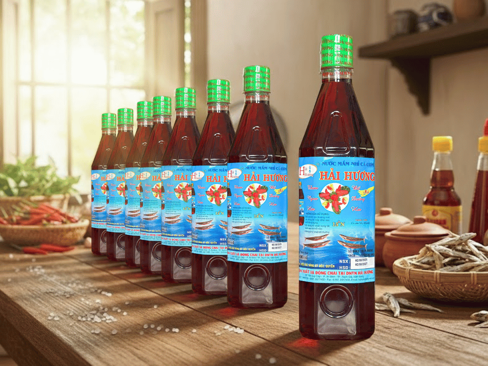 Nước mắm Hải Hương là thương hiệu gắn liền với hơn 50 năm gìn giữ và phát triển nghề làm mắm truyền thống tại Kiên Giang. Được chế biến từ cá cơm tươi ngon kết hợp cùng muối biển sạch, ủ chượp theo công thức gia truyền, mỗi giọt nước mắm Hải Hương sở hữu sắc vàng óng tự nhiên, hương thơm thuần khiết và vị mặn ngọt hài hòa đặc trưng. Sản phẩm hoàn toàn không sử dụng phẩm màu, chất bảo quản hay hóa chất độc hại, giữ trọn sự nguyên bản của biển cả trong từng bữa ăn.